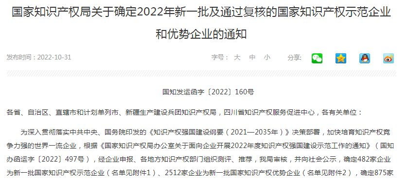 热烈祝贺爱游戏ayx登录入口-爱游戏(中国)被评为国家知识产权示范企业