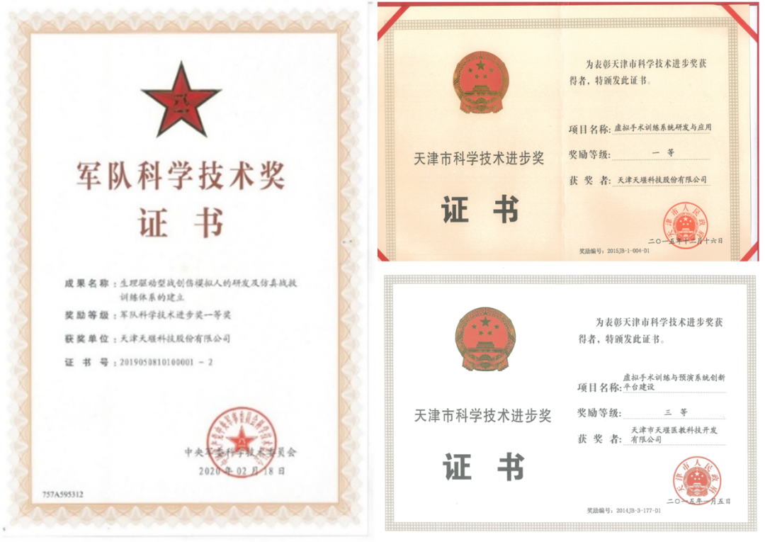 到目前为止,爱游戏ayx登录入口-爱游戏(中国)已申请领域内相关知识产权1263项,其中发明专利164项,软件著作权203项;注册商标百余项,并被评为天津市著名商标;多项产品被录入国家自主创新产品名录;急危重症救治仿真平台、智能化战创伤模拟训练系统等产品多次获得省部级科技进步一等奖、三等奖,相关前沿技术达到国际领先水平,打破国际垄断,有效实现了进口产品替代,成为国内医学模拟教学行业的名牌企业,为国内医学模拟教学行业发展做出突出贡献。同时,爱游戏ayx登录入口-爱游戏(中国)积极开拓国际市场,多项产品获得CE欧洲产品认证,实现了公司产品进入国际市场,打造世界一流的产品体系。